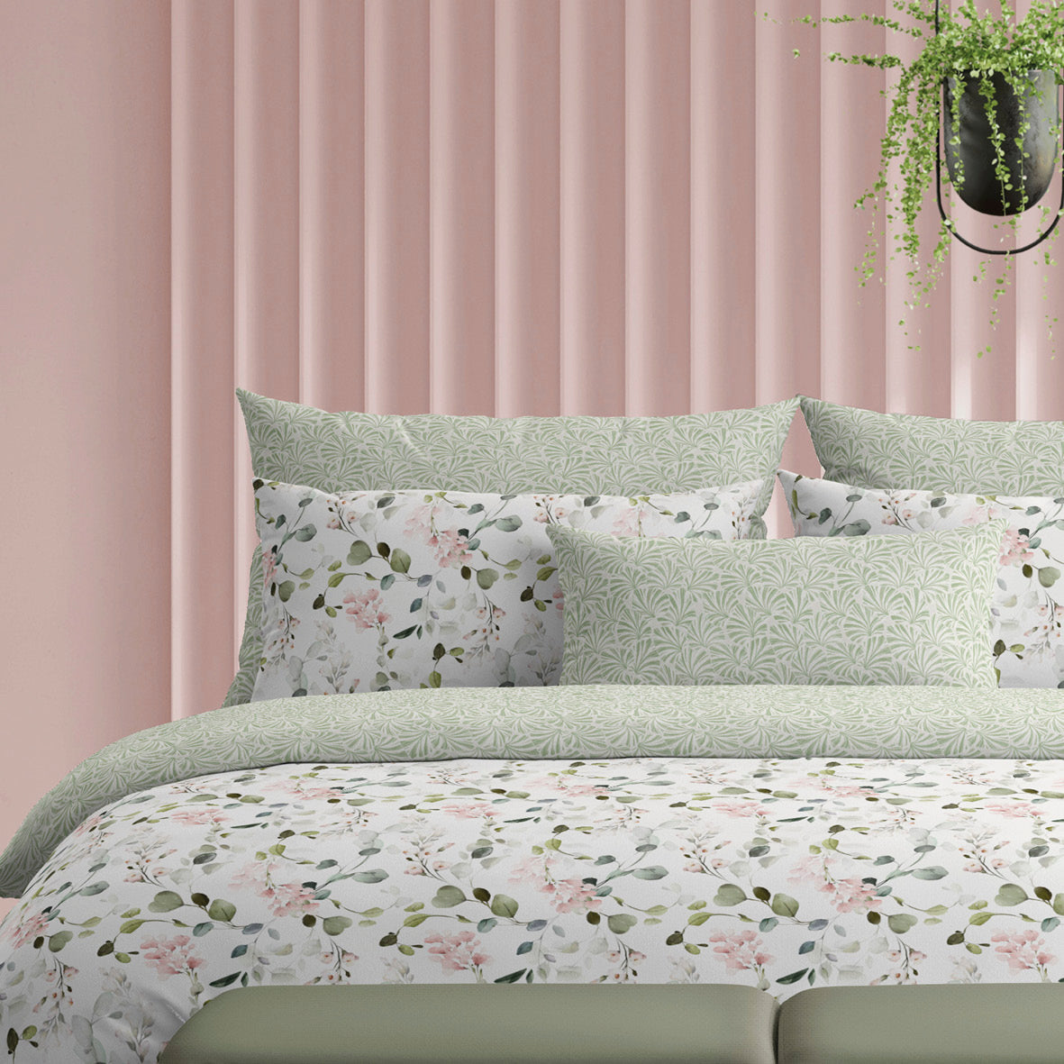 Pillowcase(s) cotton satin - Feuilles de coeur Green