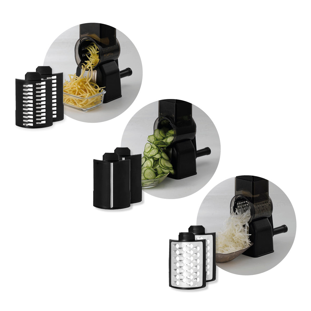 Rotary vegetable and cheese mill + 3 exchangeable blades - Silver / Black