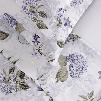 Sheet set : fitted sheet, flat sheet, pillowcase(s) in satin cotton - Fleurs Passion white