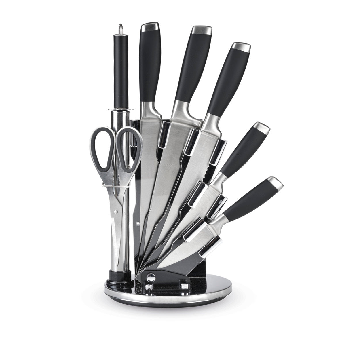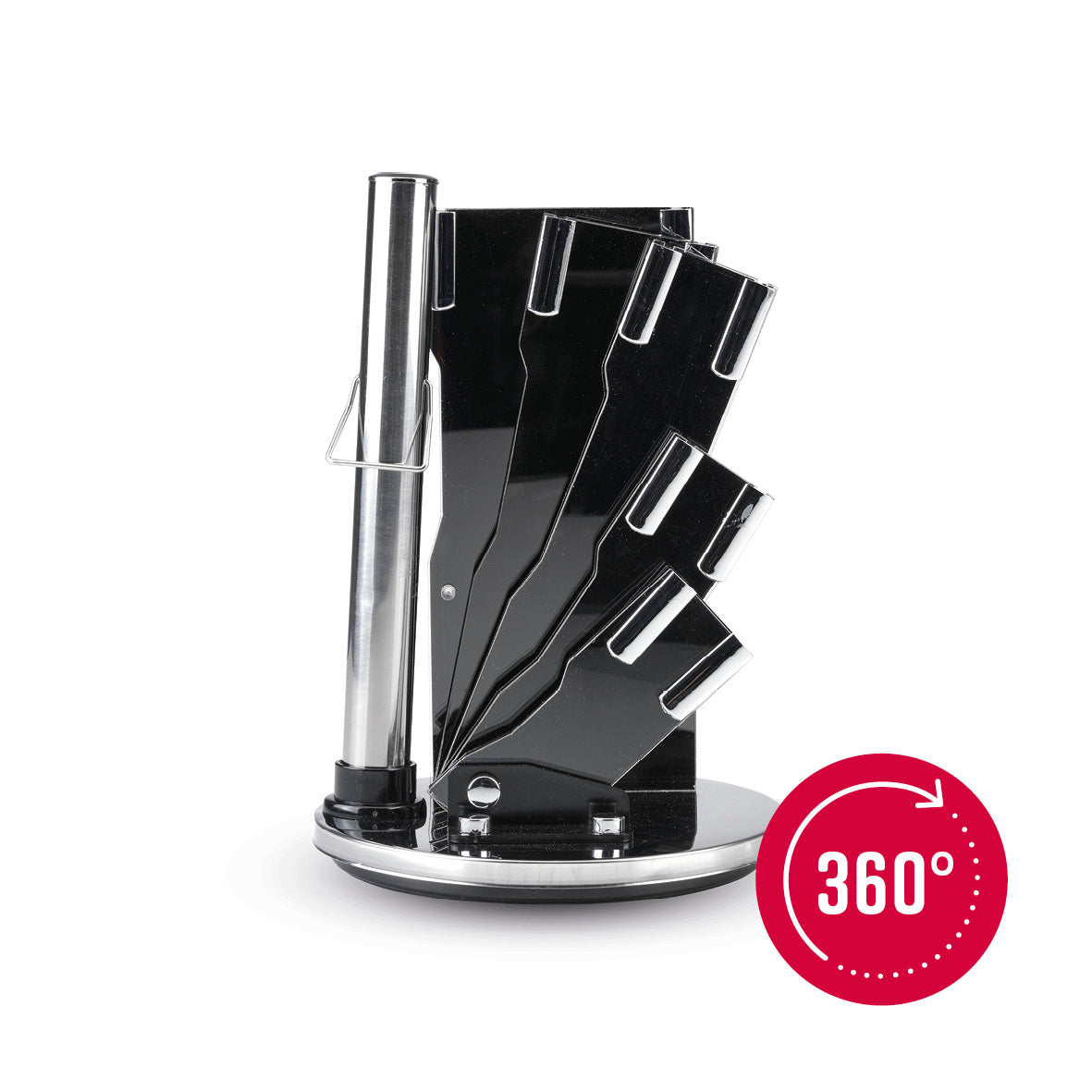 - Ergonomic design: transparent knife holders in 5 sizes + 1 kitchen scissors holder + 1 tube to insert the sharpening knife