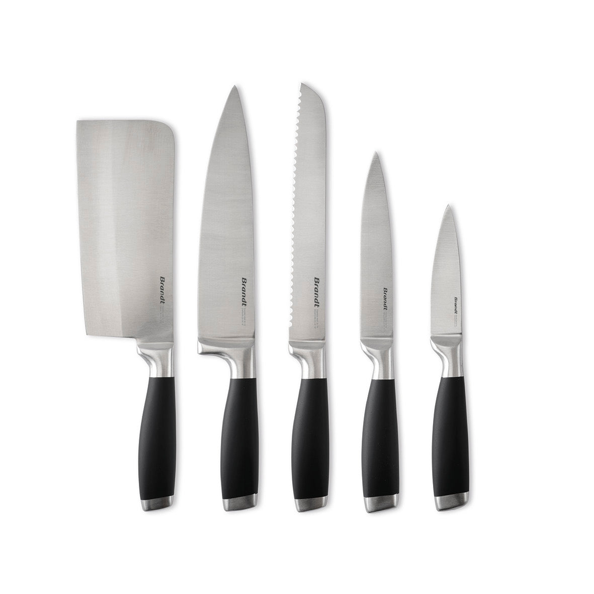 The 5 included knives are a chef’s knife, bread knife, cleaver knife, utility knife and a paring knife.