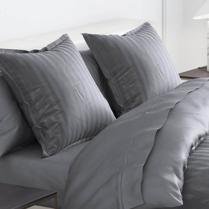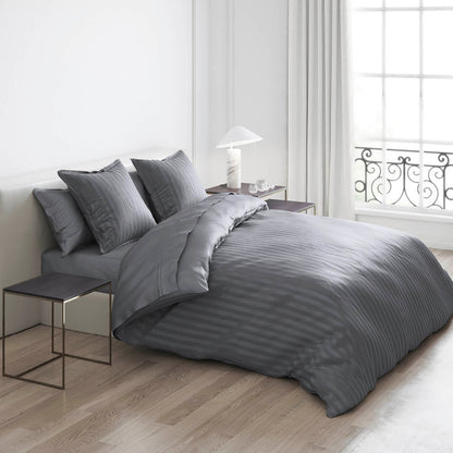 Pillowcase(s) cotton satin dobby stripe woven - Dark grey